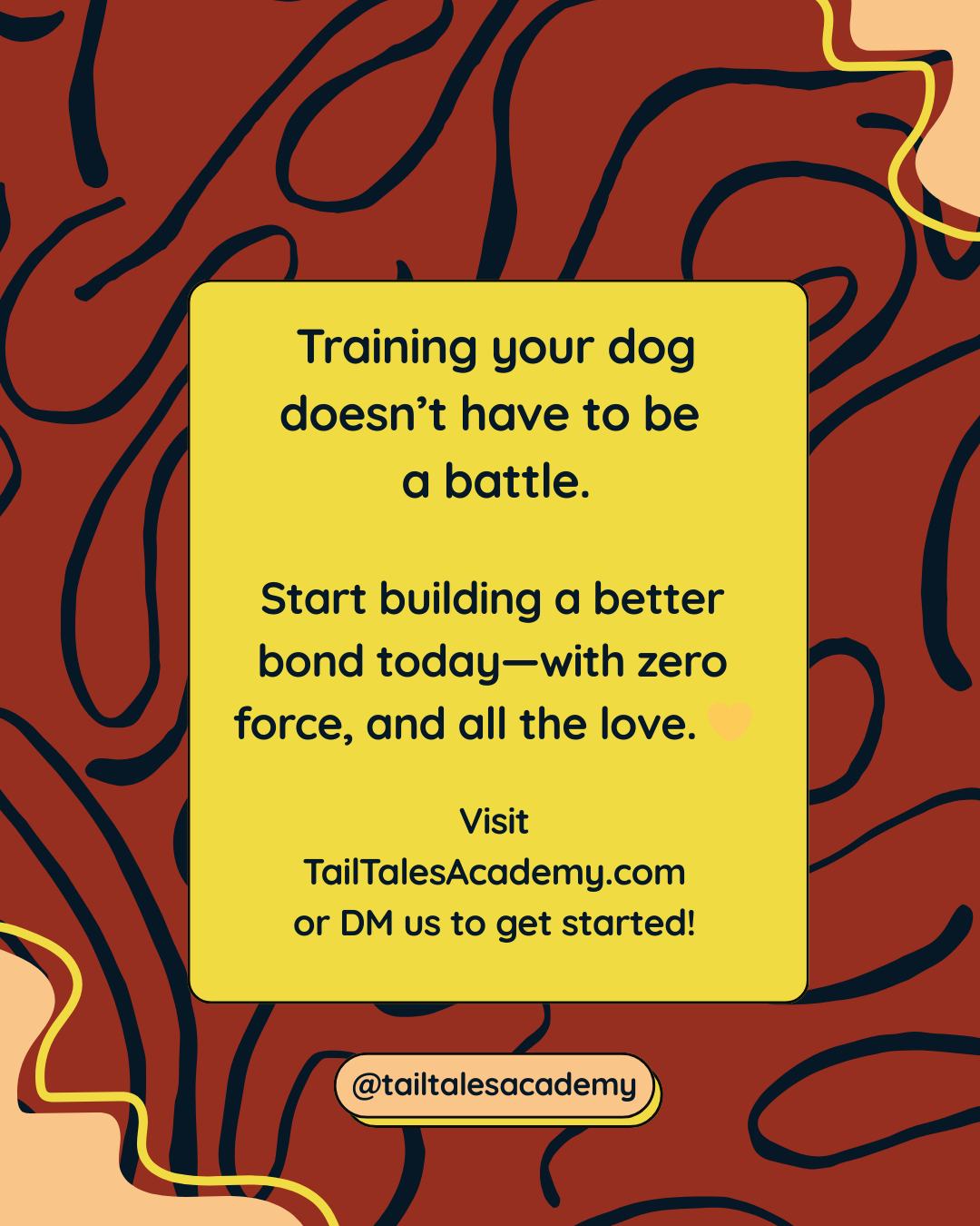 At Tail Tales Academy, we’re all about good vibes, wagging tails, and science-backed training! 🐾💛 That means no punishment, no choke chains, no e-collars — ever. We only use positive reinforcement to build trust, boost confidence, and help your dog learn in a way that’s fun and fear-free. 🐶✨
